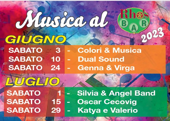 Musica al Rho's BAR - DI SABATO, GIUGNO LUGLIO AGOSTO E SETTEMBRE